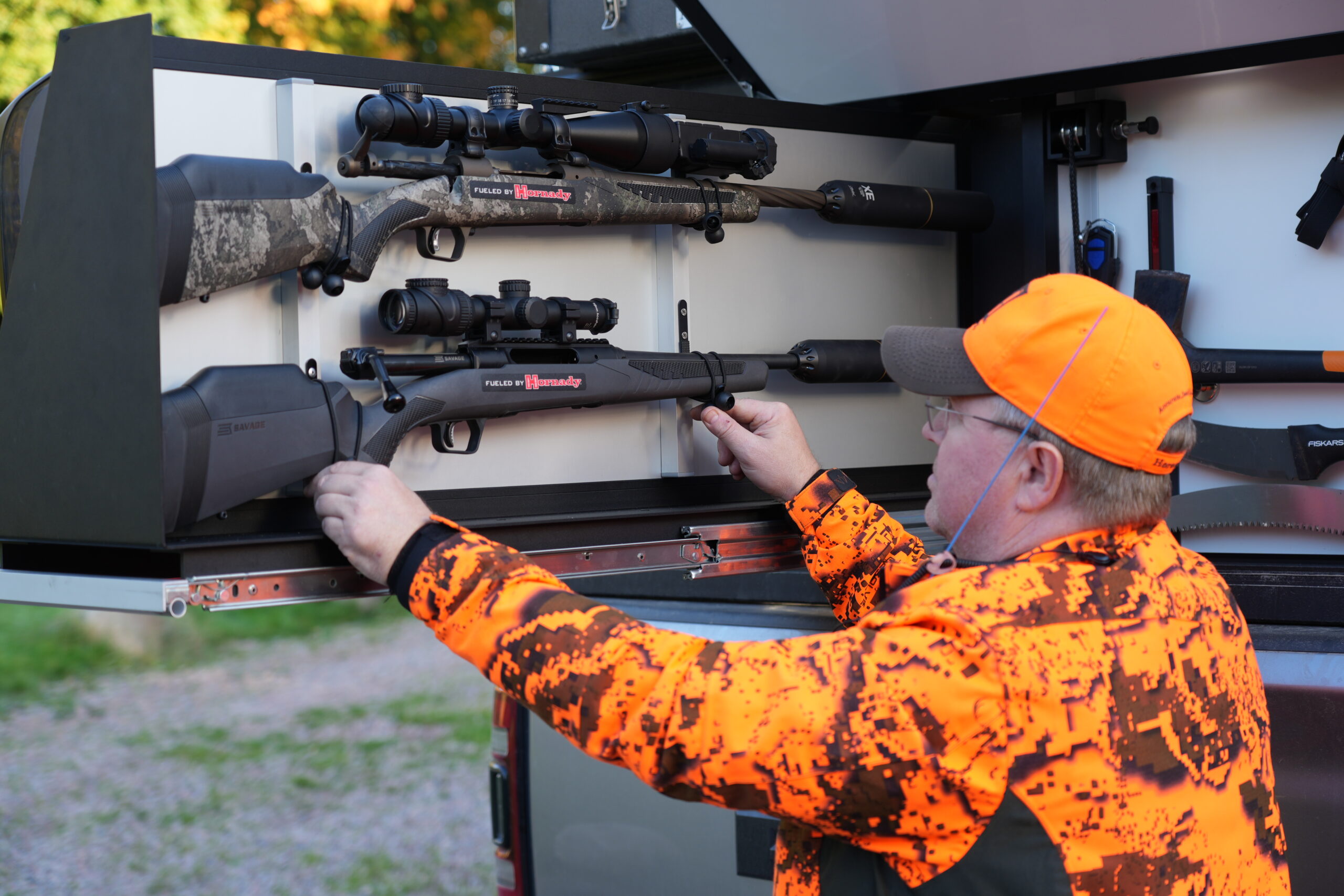 Han har jagat i många år och under lika lång tid byggt, testat och förbättrat sina egna bilar. För honom är bilen en naturlig del av jakten. Den ska klara transport, hundar, utrustning och ibland även övernattning – utan att det blir krångligt.